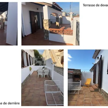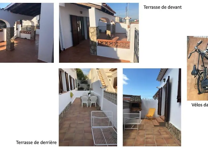De 1-slaapkamer Maison De Famille Bord De Mer La Casita Blanca L' Escala ligt 1 km verwijderd van het Platja dels Riells en nodigt gasten uit om te ontspannen op een terras.